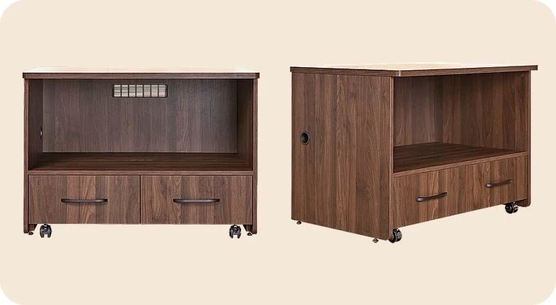 ▲左側設有出線孔設計,不擔心電器的走線不便或不安全的問題,讓您好放置好移動。